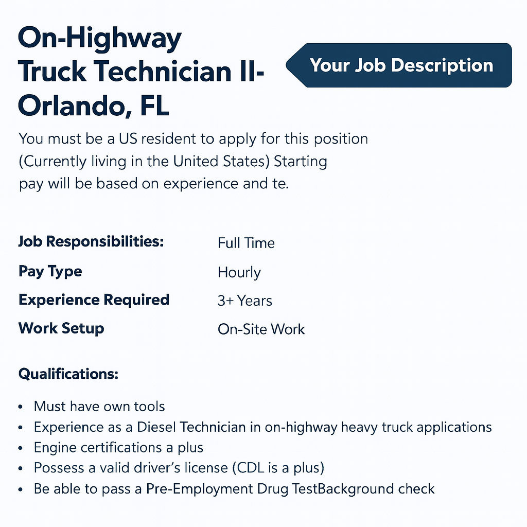 We’ve built a platform designed specifically for employers looking to connect with top diesel technicians, service professionals, and industry specialists. By advertising your open positions with us, you’ll get more than just visibility — you’ll get access to a targeted audience of professionals already engaged in the industry.